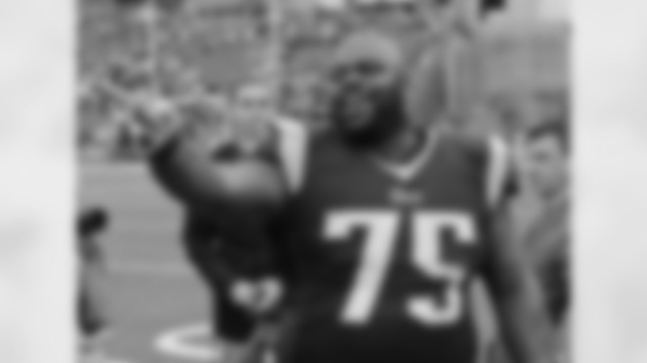 New England Patriots defensive tackle Vince Wilfork (75) celebrates during an NFL football game against the Cincinnati Bengals at Gillette Stadium on Sunday, October 5, 2014 in Foxborough, Massachusetts. New England won 43-17. (AP Photo/Aaron M. Sprecher)