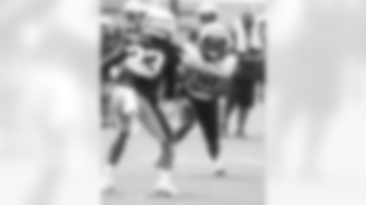 Tyrone Wheatley practices during Patriots Training Camp on July 30, 2024.