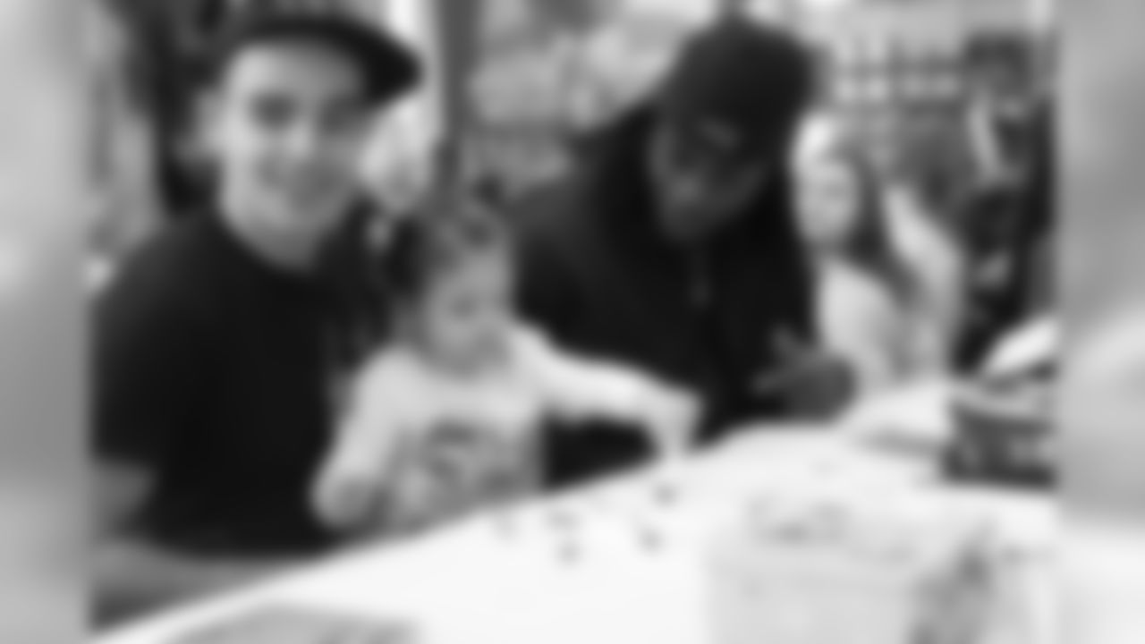 Patriots Jermaine Cunningham, Steven Gostkowski, Zoltan Mesko, Danny Aiken and former Patriot Ed Ellis joined Patriots fans, staff and children to create holiday cards for military serving overseas in the Patriots ProShop.