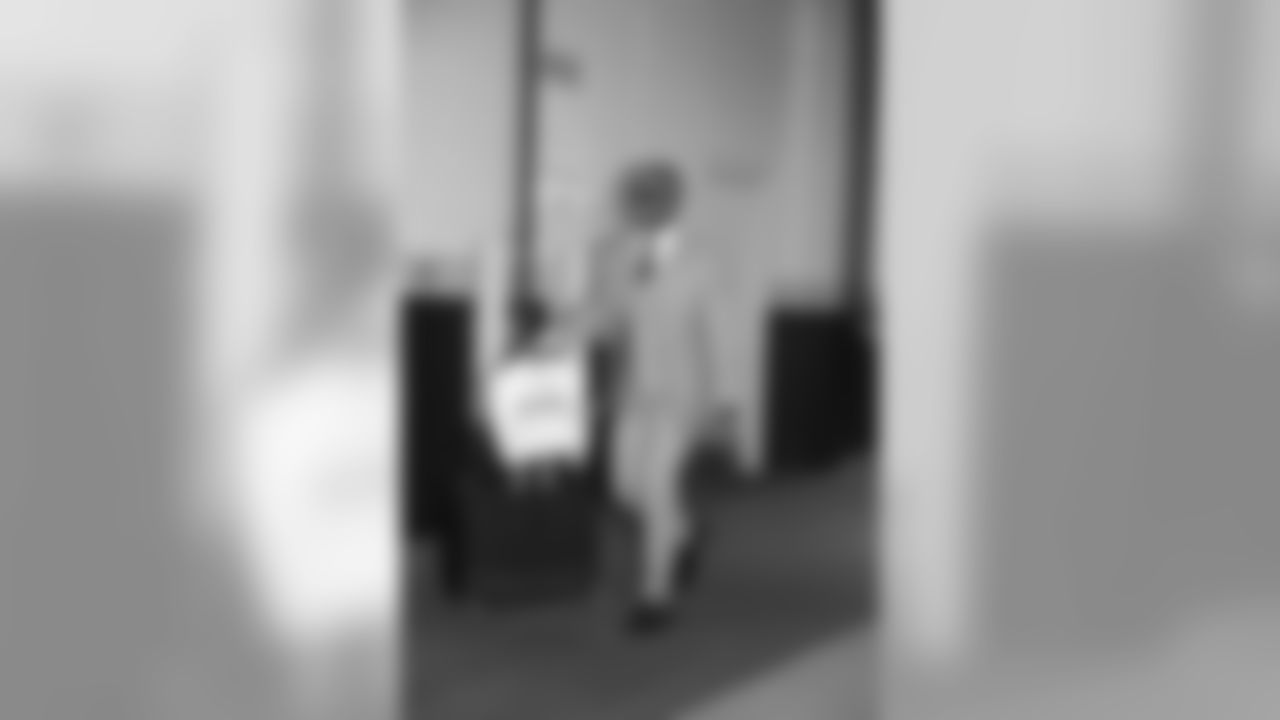 Chandler Jones makes it look simple yet fun. Light gray suit with suede slip-on shoes has the Patriots defensive end ready for anything. How about a blocked kick, scoop and score on Sunday?